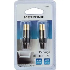 METRONIC Fiche TV Premium (lot De 2) Dorée Blindée 9,52 Mm Mâle/fem. – Gris