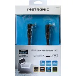 METRONIC Câble HDMI Premium High Speed + Ethernet Mâle/mâle Coudé 1,5 M – Noir