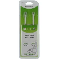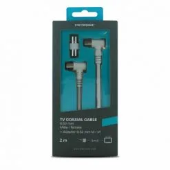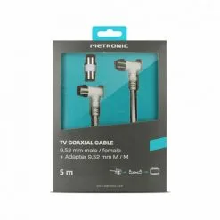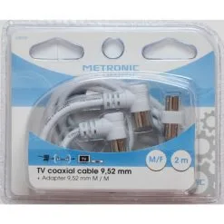 METRONIC Câble TV Coaxial 9,52 Mm Coudé Mâle/fem. + Adaptateur 9,52 Mm 2 M – Blanc – Blanc