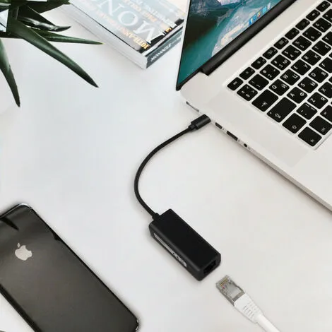 Cet adaptateur vous permet d’ajouter un port Ethernet RJ45 à votre PC ou tablette équipés seulement de port USB Type-C. Vous pouvez ainsi bénéficier d’une connexion Ethernet haut débit, stable et rapide ; ce qui est idéal pour jouer en ligne, profiter du streaming, ou regarder la TV en HD. De plus, cet adaptateur prend en charge une vitesse allant jusqu’à 1000 Mbps tout en restant compatible avec les équipements 10/100Mbps. Vous pouvez ainsi naviguer sur Internet sans aucune craintes et profiter au maximum de votre connexion réseau.