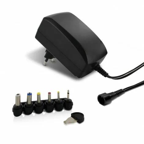 Ses 6 connecteurs différents rendent cette alimentation compatible avec la plupart des appareils.Vous pouvez ainsi remplacer plusieurs chargeurs différents avec un seul et même produit.Sa tension de sortie réglable de 3 à 12 V lui permet de s’adapter à différents niveaux de tension.