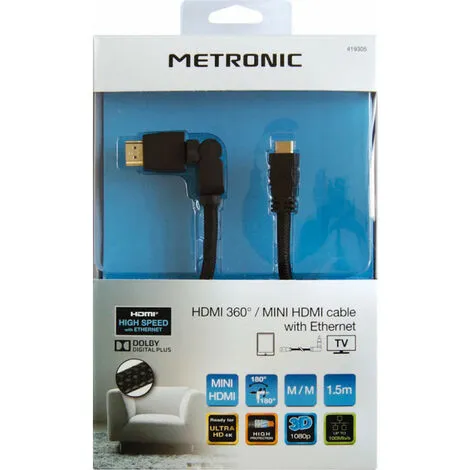 ROTATIF 360° HDMI HIGH SPEED WITH ETHERNET MÂLE/MÂLE 1,5m