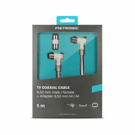 METRONIC Câble TV Premium Coax. F/9,52 Mm Mâle/mâle Dorées Gaine Tressée 1,5 M – Noir – Noir