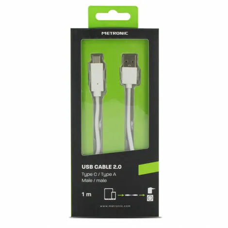 METRONIC Câble USB-C Mâle/USB-A Mâle 2.0 – 1 M – Blanc – Blanc
