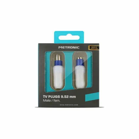 METRONIC Câble TV Coaxial 9,52 Mm Coudé Mâle/fem. + Adaptateur 9,52 Mm 2 M – Blanc – Blanc