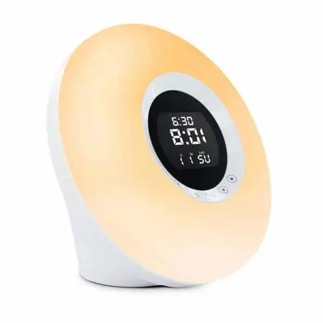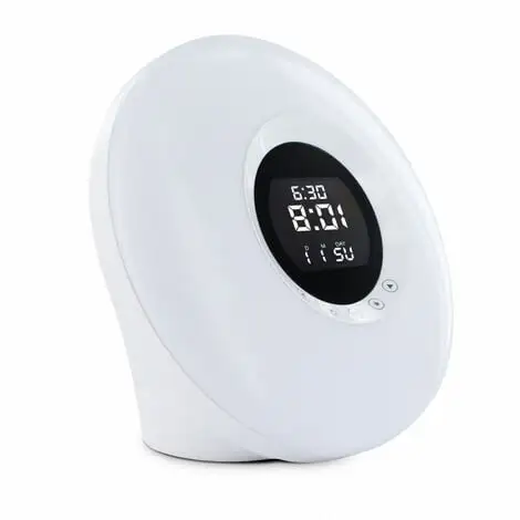 Ce radio réveil dispose de la fonction simulateur d’aube, qui imite le lever du soleil.
